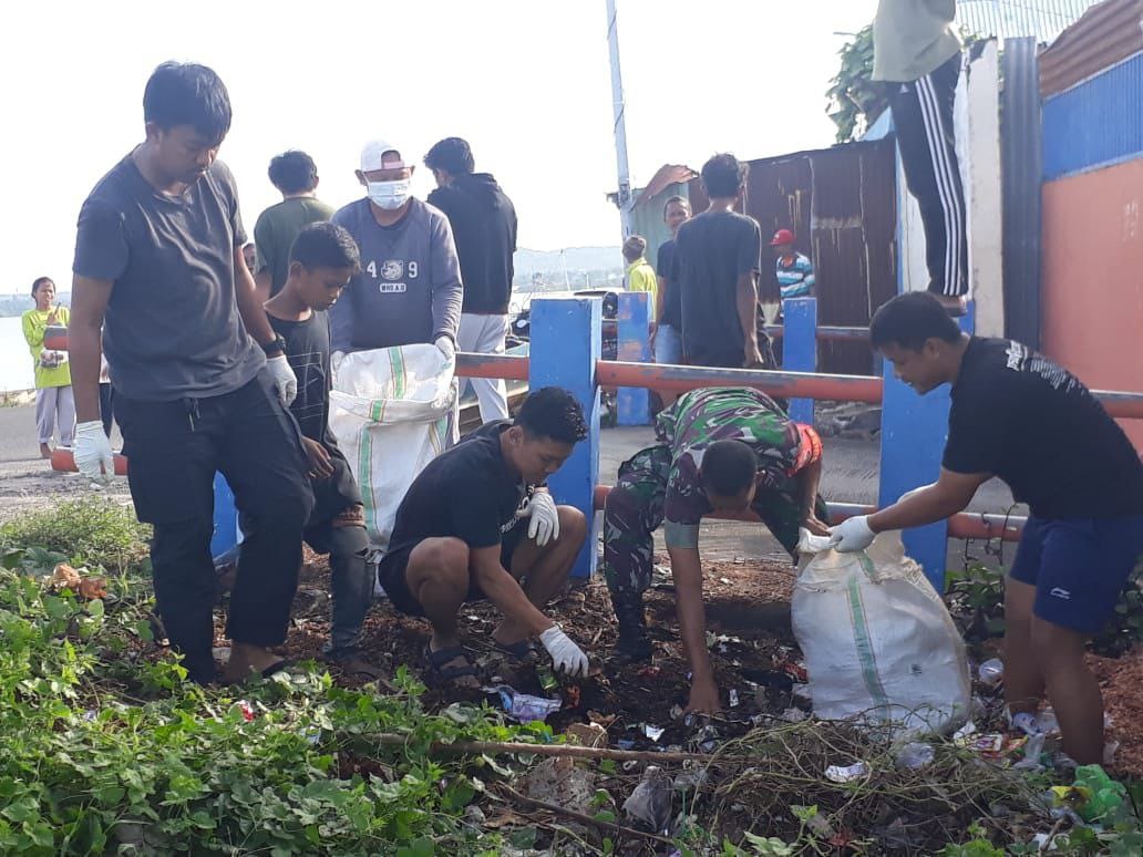 Terlihat Babinsa Koramil-03 bersama warga melakukan gotong-royong pembersihan sampah dan semak sebagai upaya menciptakan lingkungan yang bersih dan sehat, terlebih pada musim hujan bisa menimbulkan sarang nyamuk dan mengakibatkan penyakit Demam Berdarah.