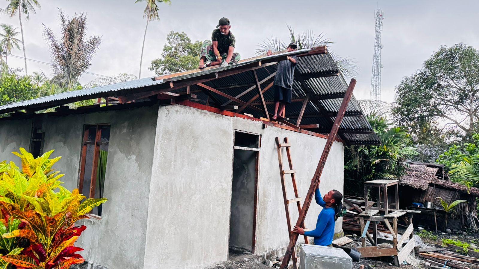 Pembangunan Rumah Tidak Layak Huni (RTLH) yang merupakan salah satu program TNI Manunggal Membangun Desa (TMMD) Reguler ke-124 Kodim 1502/Masohi saat ini telah memasuki tahap pemasangan atap, Bertempat di Desa Waraka Kec. Teluk Elpaputih Kab. Malteng.