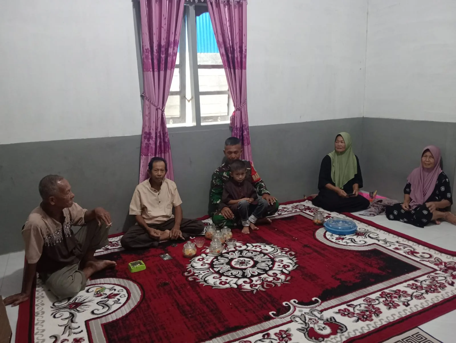 Simeulue – Serda Muhar Sipin Babinsa Koramil 02/Simeulue Tengah, Kodim 0115/Sml, Korem 012/Tu, kunjungi rumah warga dalam arti anjangsana hangatnya lebaran di Desa Latitik, Kecamatan Simeulue Tengah, Kabupaten Simeulue. Minggu (22/03/2026).