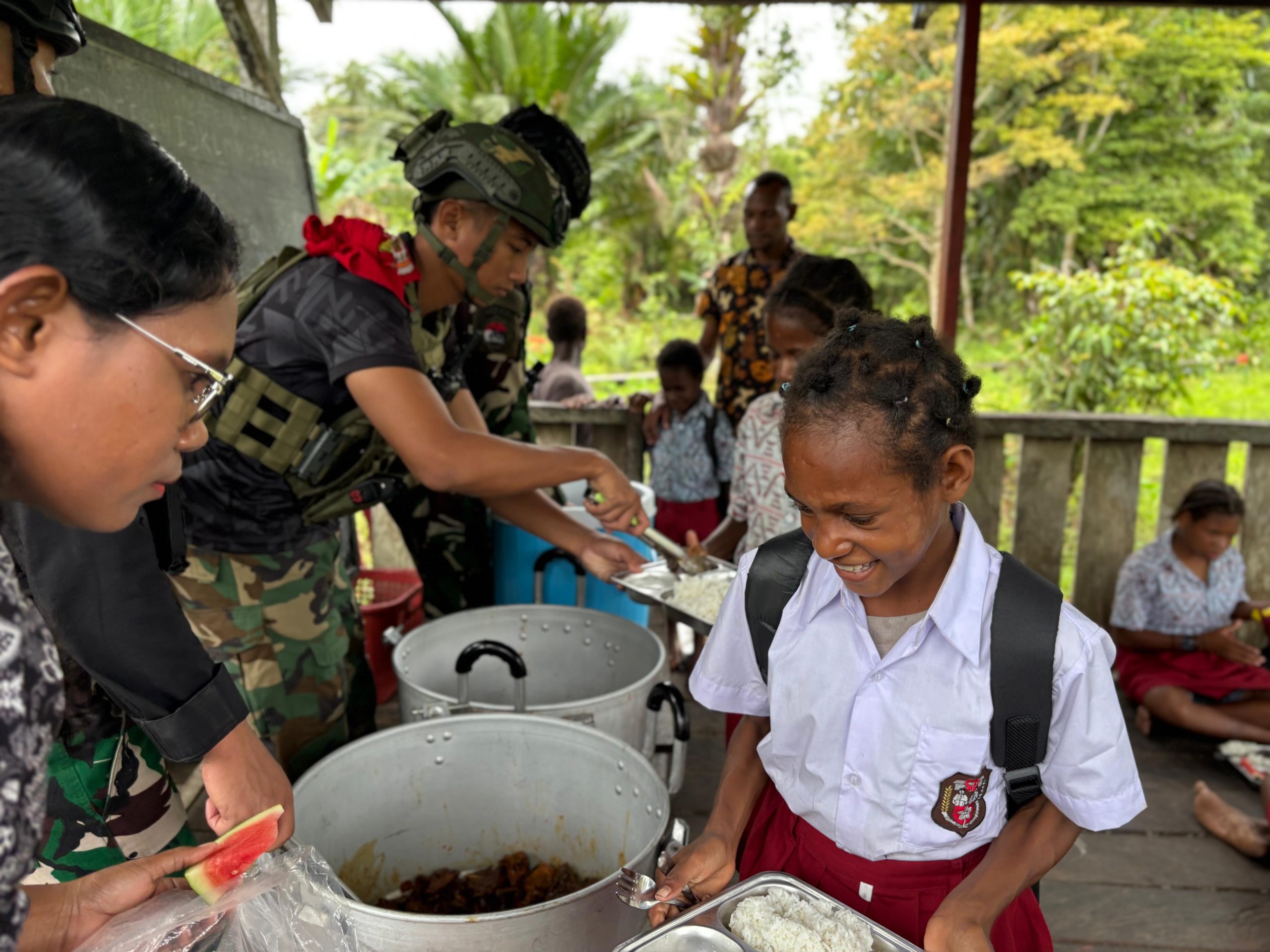 Papua – Senyuman cerah anak-anak Papua menjadi bukti nyata keberhasilan program “Masariku Peduli Gizi” yang digelar prajurit Satuan Tugas Pengamanan Perbatasan (Satgas Pamtas) Mobile Yonif 733/Masariku di SD Rimba Mumugu. Program inovatif ini tidak hanya memberikan makanan bergizi gratis, tetapi juga menanamkan harapan baru bagi masa depan pendidikan di pedalaman Papua.