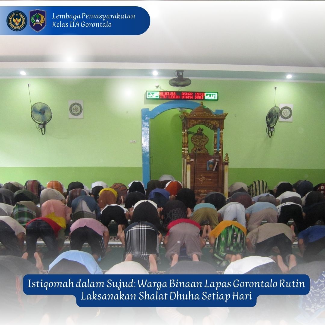 Sementara itu, Kalapas Gorontalo, Sulistyo Wibowo, menambahkan bahwa kegiatan keagamaan seperti ini merupakan bagian penting dalam proses reintegrasi sosial warga binaan. “Shalat dhuha dan kegiatan rohani lainnya memberi kekuatan mental dan spiritual. Harapan kami, nilai-nilai positif ini akan terus mereka bawa saat kembali ke masyarakat.”