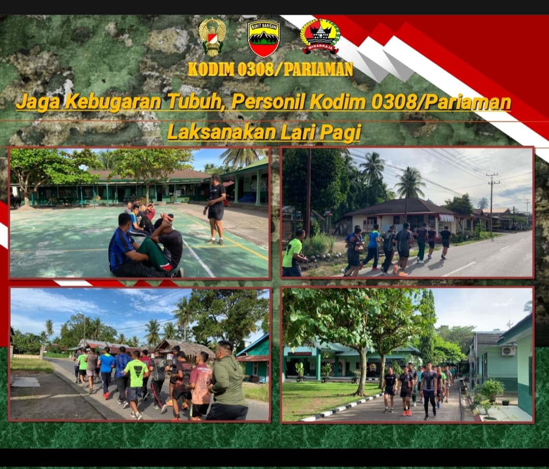 Pasi Pers Kodim 0308/Pariaman Lettu Inf Yonnedi mengatakan kegiatan pembinaan fisik merupakan salah satu program rutin yang bertujuan untuk menjaga kebugaran tubuh.” “Dengan tubuh yang bugar maka imun kita akan meningkat” Ujarnya.