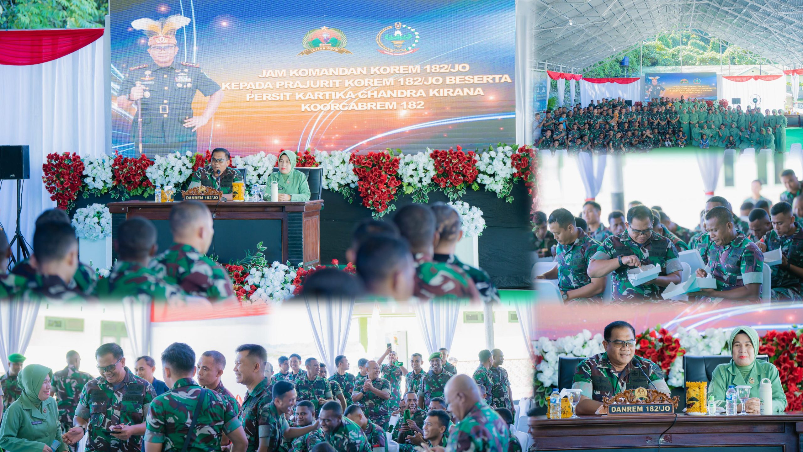 Kegiatan jam komandan (Jamdan) yang di ikuti oleh seluruh Prajurit & Persit Korem 182/JO yang dilaksanakan setelah selesai melaksanakan kegiatan Apel Pagi. Dalam Jamdan pertamanya Danrem memberikan motovasi agar prajuritnya Disiplin, Militan, Loyal, Bekerja Dengan Tulus Ikhlas dan Dicintai Rakyat.