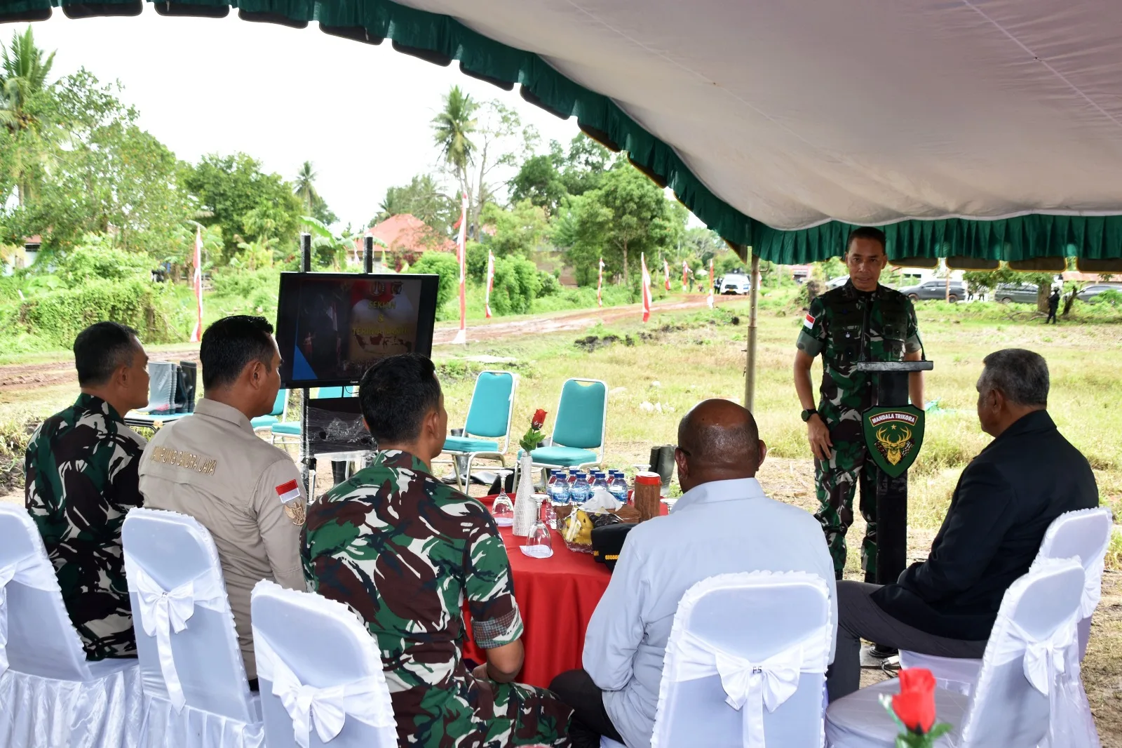Nampak hadir para pejabat Kodam XXIV/Mandala Trikora, Danrem 174/ATW Brigjen TNI Mustakim, S.I.P., M.Si., Kasi Keterpaduan Pembangunan BWS Papu Selatan Quentino Elgar dan Kepala Kampung Chandra Jaya Bapak Aris.
