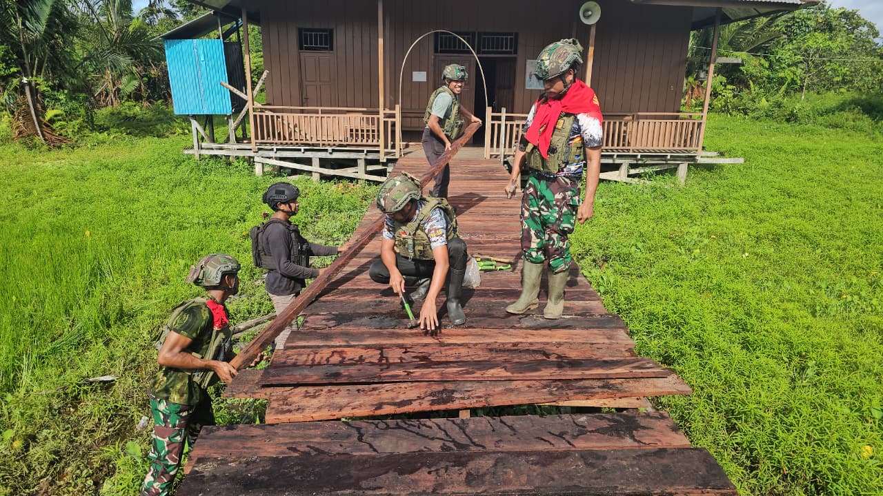 Jembatan Harapan: Satgas Pamtas Mobile Yonif 733/Masariku Terus Rajut Asa di Kampung Mumugu Melalui Perbaikan Jembatan Gereja Katolik