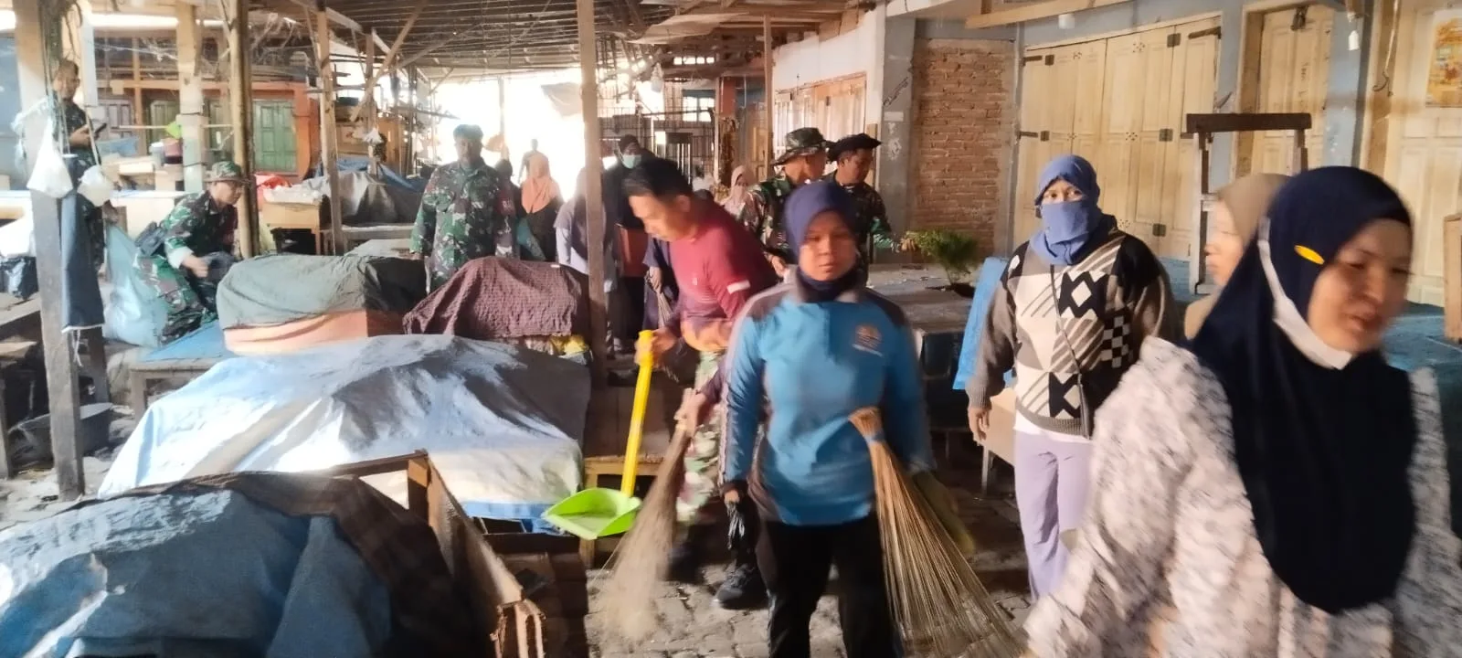 Enrekang – personil koramil 1419-02/Enrekang Melaksanakan karya bakti pembersihan pasar Sentral Enrekang dari tanah, rumput dan sampah lainnya sepanjang 150 meter di Kel. Juppandang Kec. Enrekang Kab. Enrekang. Jumat,(03/10/2025).