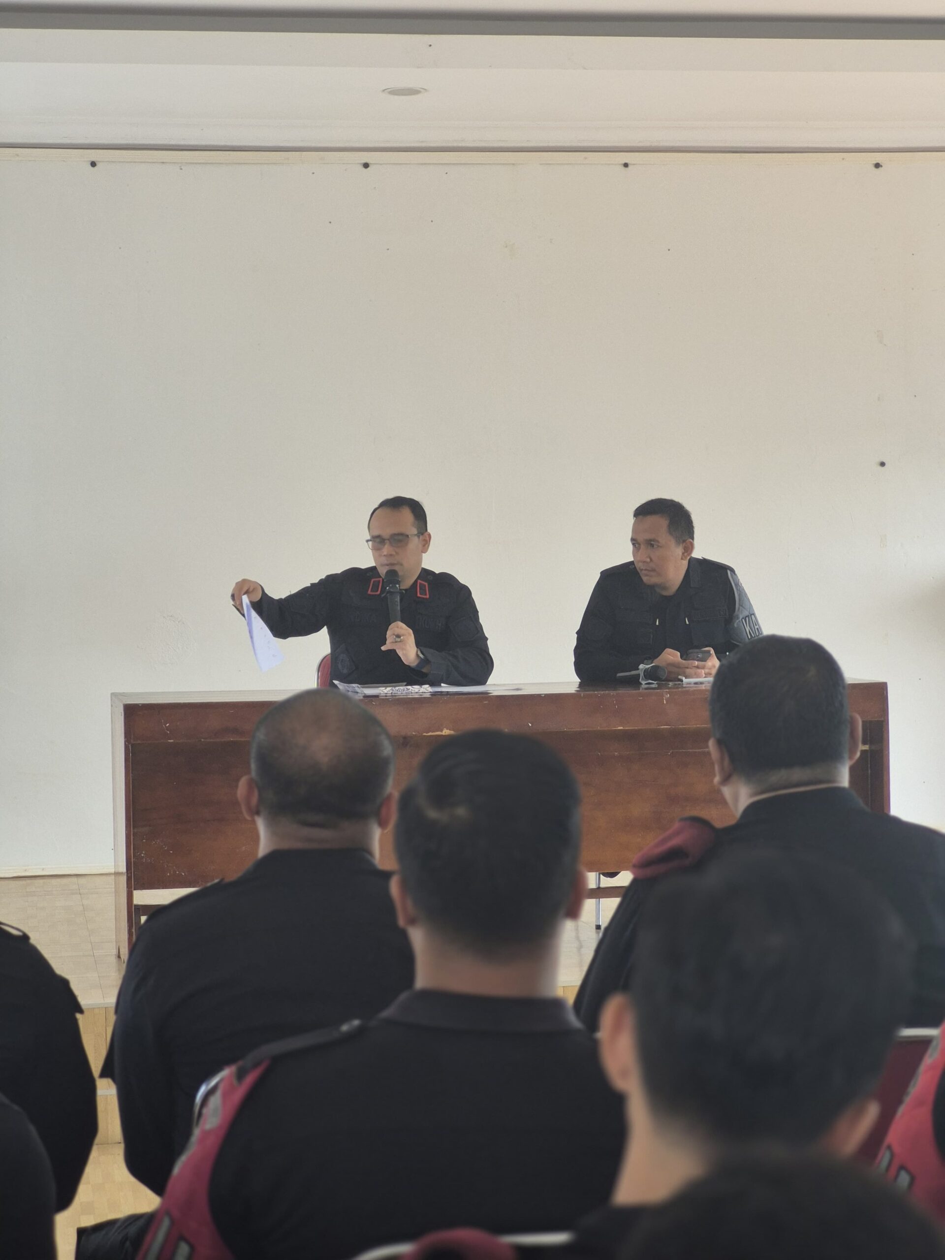 Palu, INFO_PAS – Kepala Rumah Tahanan Negara (Rutan) Kelas IIA Palu, Fani Andika, didampingi Kepala Kesatuan Pengamanan Rutan (Ka.KPR), Muhammad Rias, memberi penguatan tusi dan arahan kepada selruh anggota regu pengamanan, Jum’at (21/06/2025).