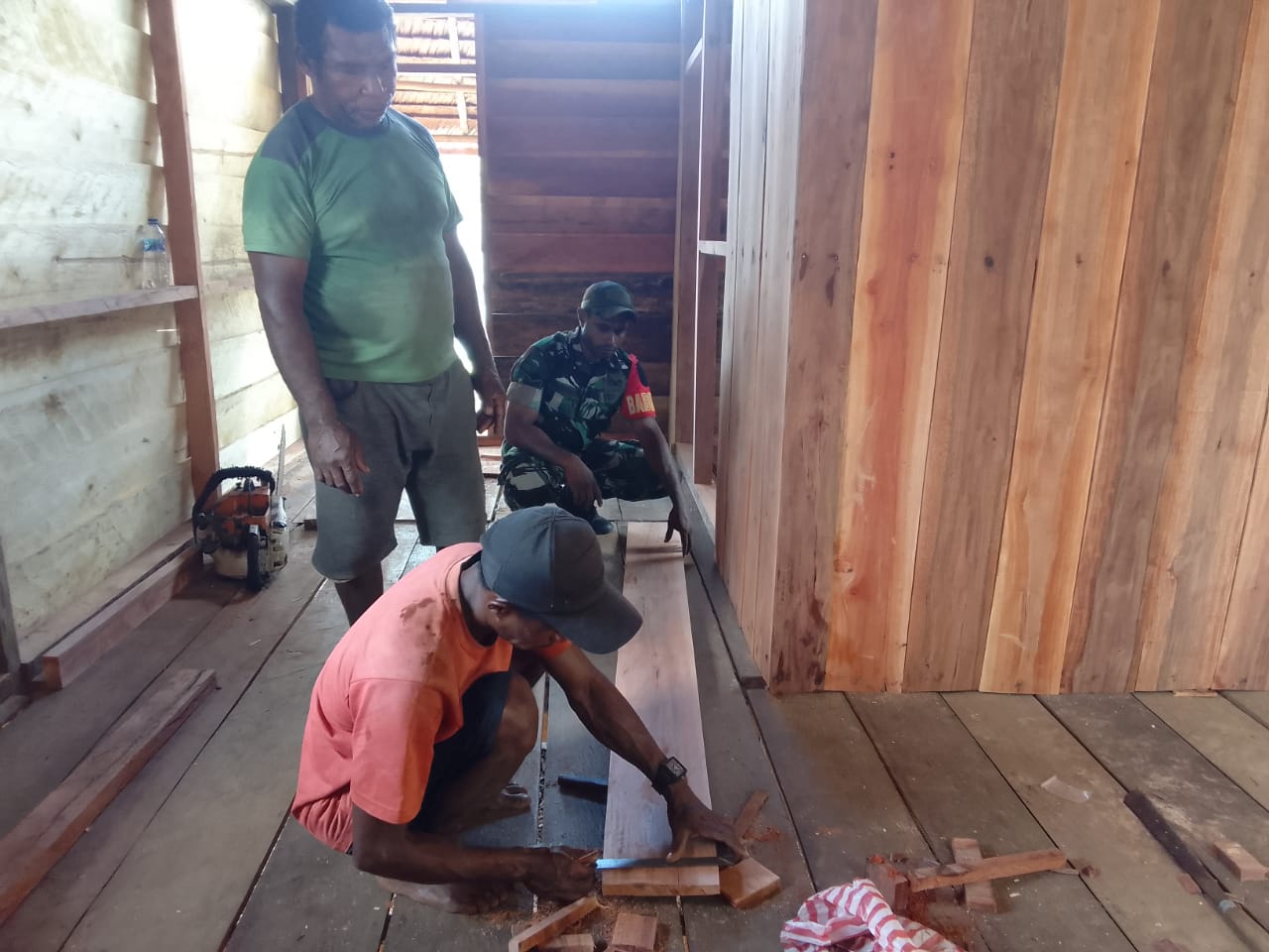 Raja Ampat, PBD- Babinsa Koramil 1805-01/Waisai, Kodim 1805/Raja Ampat, Serka Oktovianus Waropen Melaksanakan kegiatan Karya Bakti dengan mendampingi sekaligus membantu Warga Desa Binaan Membangun Bangunan Rumah di Kampung Go, Distrik Tiplol Mayalibit, Kabupaten Raja Ampat, Jum’at, (16/05/2025).