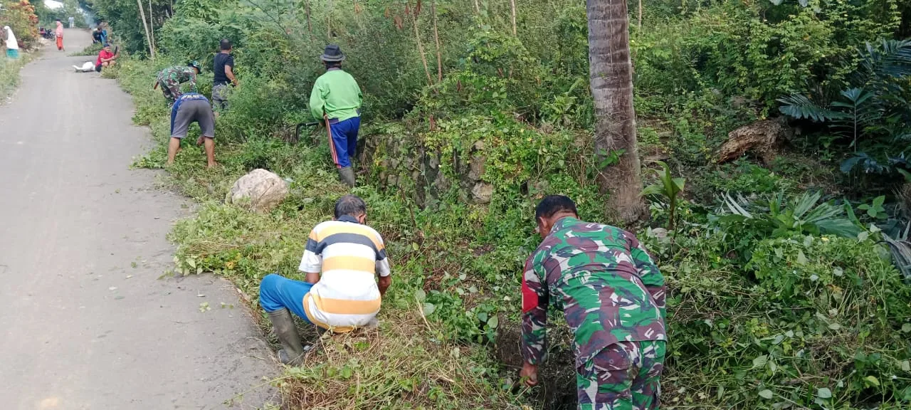 Babinsa Koramil 1419-03/Baraka bersama warga setempat terlihat bergotong royong membersihkan drainase dengan menggunakan peralatan sederhana. Kegiatan ini sekaligus menjadi wujud nyata kemanunggalan TNI dengan rakyat dalam menjaga kebersihan lingkungan dan mencegah terjadinya bencana banjir.