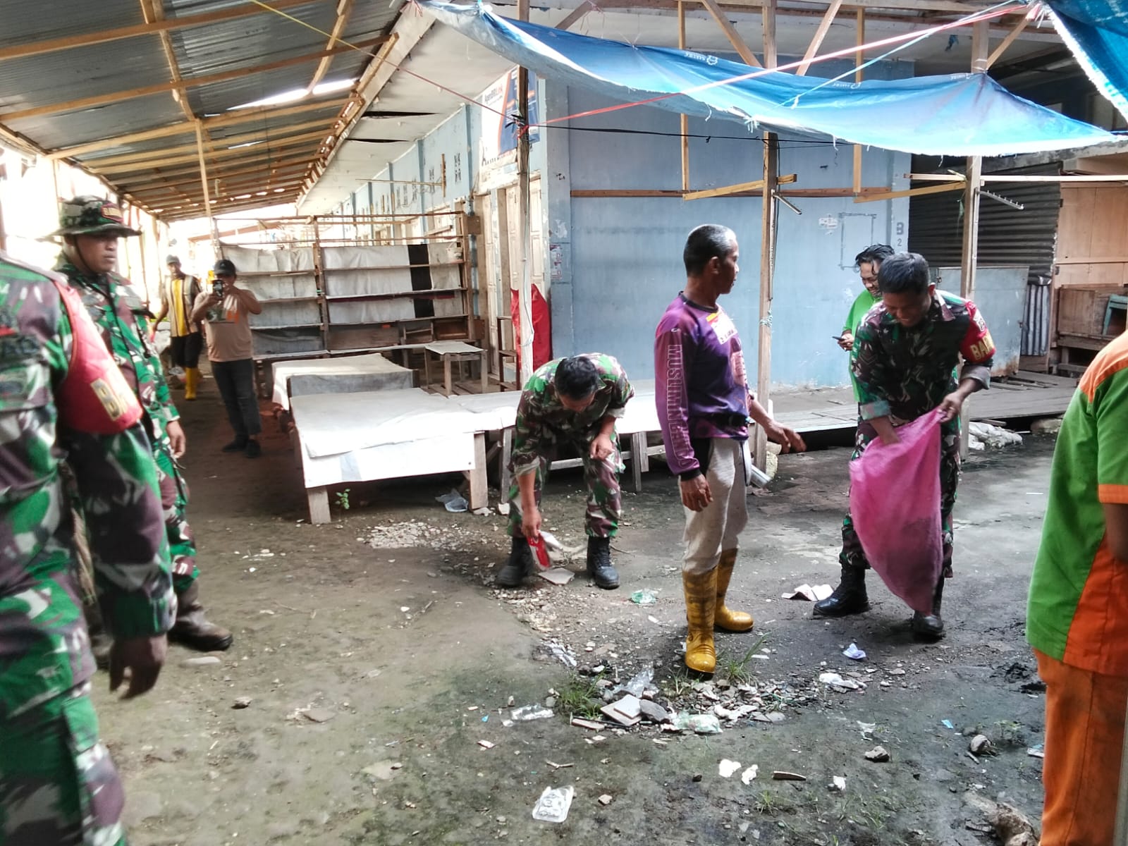 Karya Bakti Pembersihan Pasar Sentral oleh Anggota Koramil 02/Enrekang Bersama Masyarakat