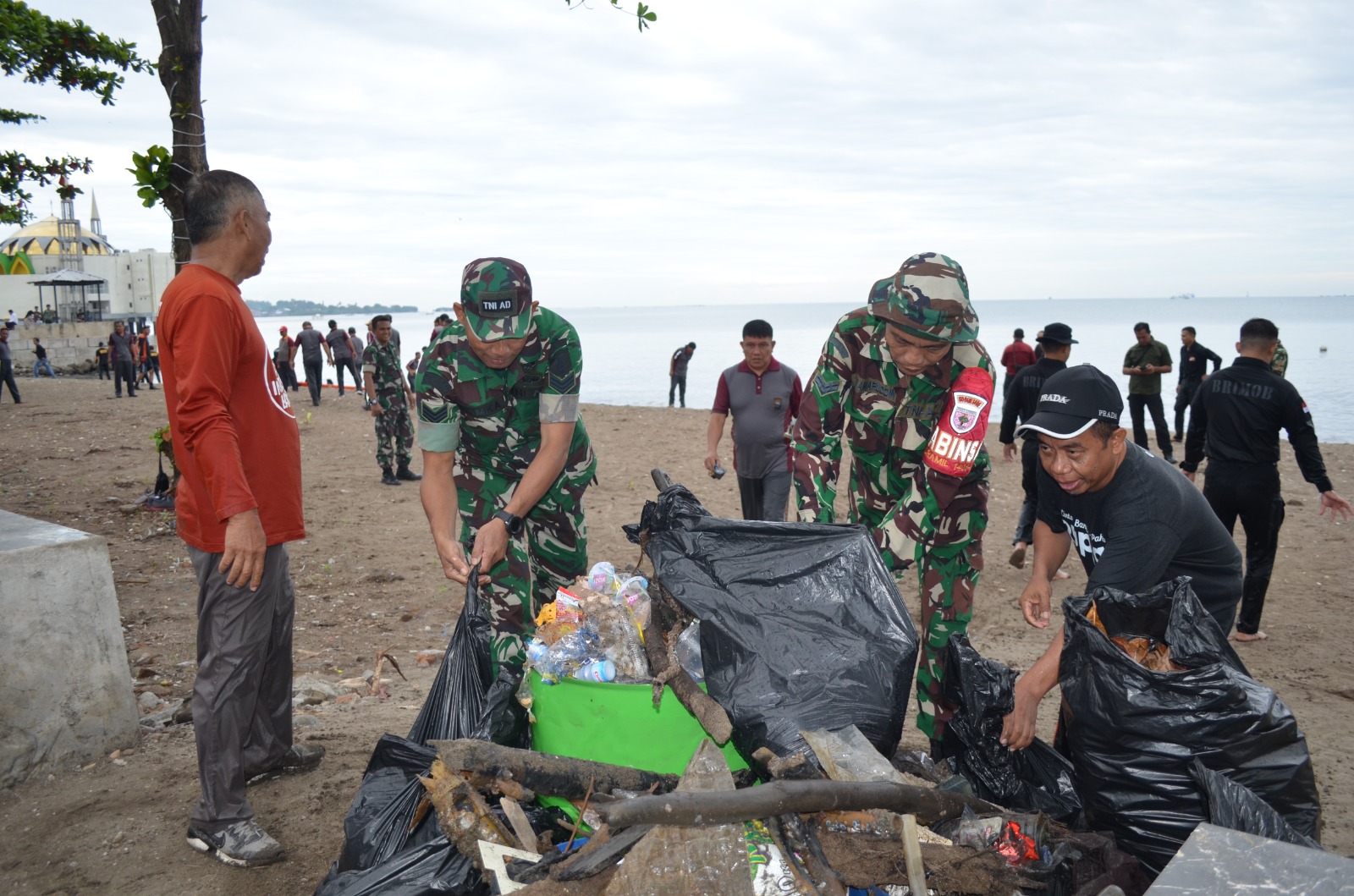 KODIM 1405/PAREPARE – Personel Kodim 1405/Parepare melaksanakan kegiatan karya bakti pembersihan pantai dalam rangka memperingati Hari Ulang Tahun (HUT) Bhayangkara. Kegiatan ini merupakan wujud sinergi antara TNI dan Polri dalam menjaga kebersihan lingkungan, khususnya di area pantai bertempat di Jl. Mattirotasi Kelurahan Cappa Galung Kecamatan Bacukiki Barat Kota Parepare. Santu (28/06/2025