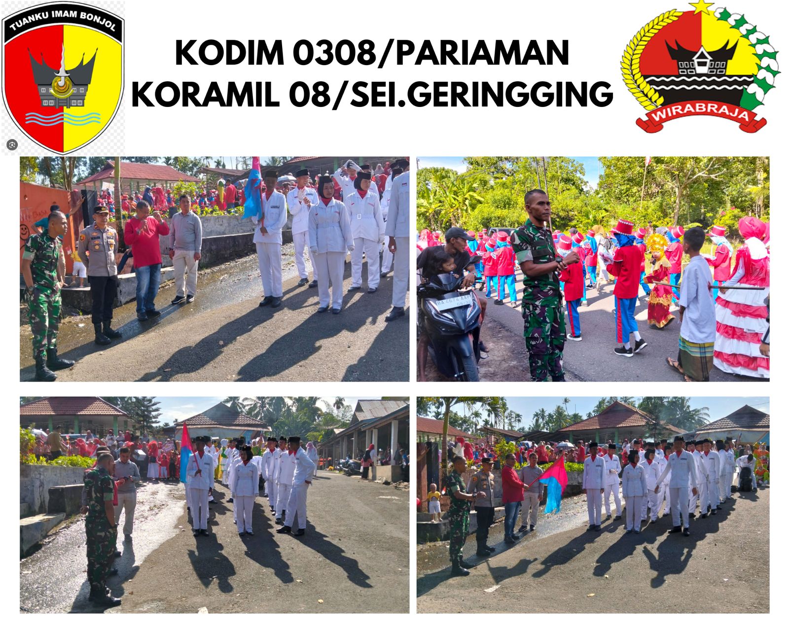 Selain Partisipasi Dari Siswa-Siswi, Kegiatan Ini Juga Mendapat Dukungan Penuh Dari Unsur TNI-Polri Yang Mana Turut Hadir Dan Memberikan Pengamanan Serta Semangat Kepada Peserta, Babinsa Koramil 08/ Sungai Geringging Serda Rahmad Irawan Hadir Memastikan Kelancaran Jalannya Pawai, Tetapi Juga Menjadi Wujud Sinergi Antara Aparat Keamanan Dengan Masyarakat Dalam Menjaga Ketertiban dan Kekompakan Selama Acara Berlangsung.