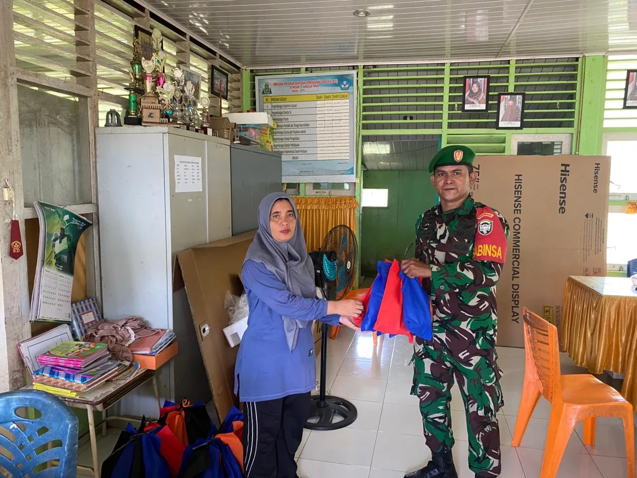 Simeulue – Sertu David Babinsa Koramil 01/Simeulue Timur, Kodim 0115/Simeulue, Korem 012/Teuku Umar. Melaksanakan kegiatan pendampingan Makan Bergizi Gratis (MBG) Di, Kecamatan Simeulue Timur, Kabupaten Simeulue. Sabtu (15/11/2025).