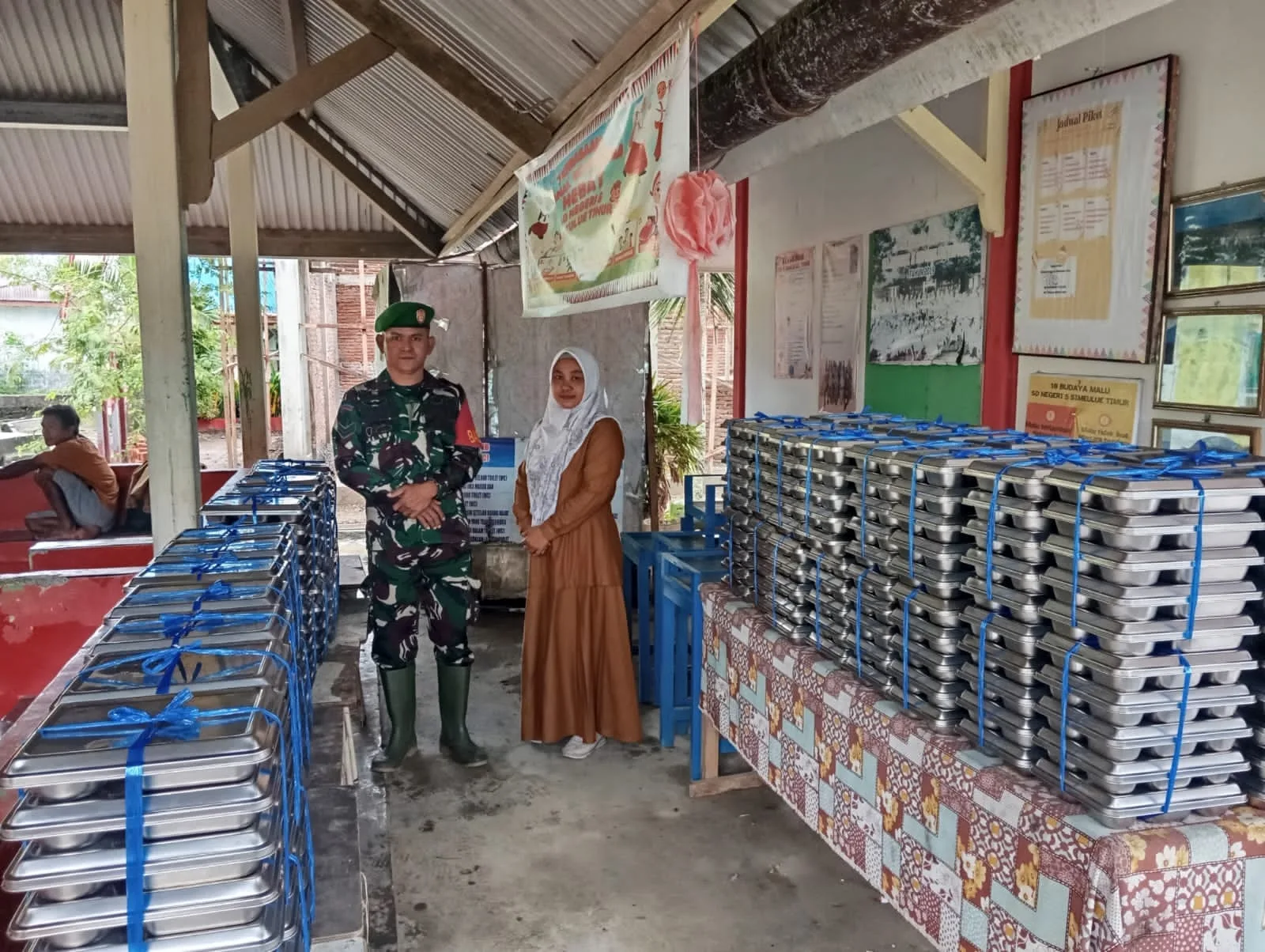 Simeulue – Sertu David Babinsa Koramil 01/Simeulue Timur, Kodim 0115/Simeulue, Korem 012/Teuku Umar. Melaksanakan kegiatan pendampingan Makan Bergizi Gratis (MBG) Di, Kecamatan Simeulue Timur, Kabupaten Simeulue. Senin (24/11/2025).
