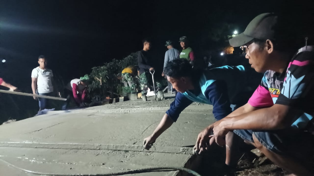 Enrekang – Satuan Tugas (Satgas) TNI Manunggal Membangun Desa (TMMD) ke-125 Kodim 1419/Enrekang terus mengejar target penyelesaian sasaran fisik pengecoran jalan di Desa Pekalobean, Kecamatan Anggeraja. Demi tercapainya hasil sesuai jadwal, prajurit bersama warga setempat rela bekerja hingga larut malam. Rabu 20/08/2025