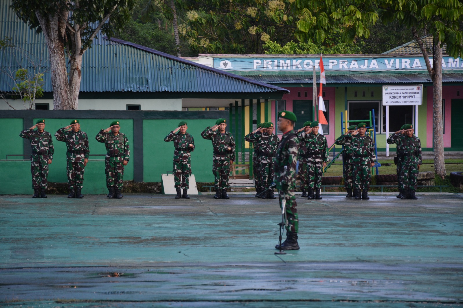 Sorong – Papua Barat Daya, Upacara Tujuh Belasan Bulan April 2025 dilaksanakan oleh seluruh jajaran TNI AD. Untuk Jajaran Korem 181/PVT dipimpin oleh Kasrem 181/PVT Kolonel Inf Dr. Raden Dwi Tjahjo Harsono, S.E., M.Si., yang dihadiri oleh Para Kasi Korem 181/PVT, Dan/Kabalak Aju Jajaran Kodam XVIII/Ksr, Kabalak Aju Korem 181/PVT, para Perwira, Bintara dan Tamtama serta PNS jajaran Korem 181/PVT, bertempat di Lapangan Upacara Makorem 181/PVT, Kota Sorong, Provinsi Papua Barat Daya, Kamis (17/04/2025).