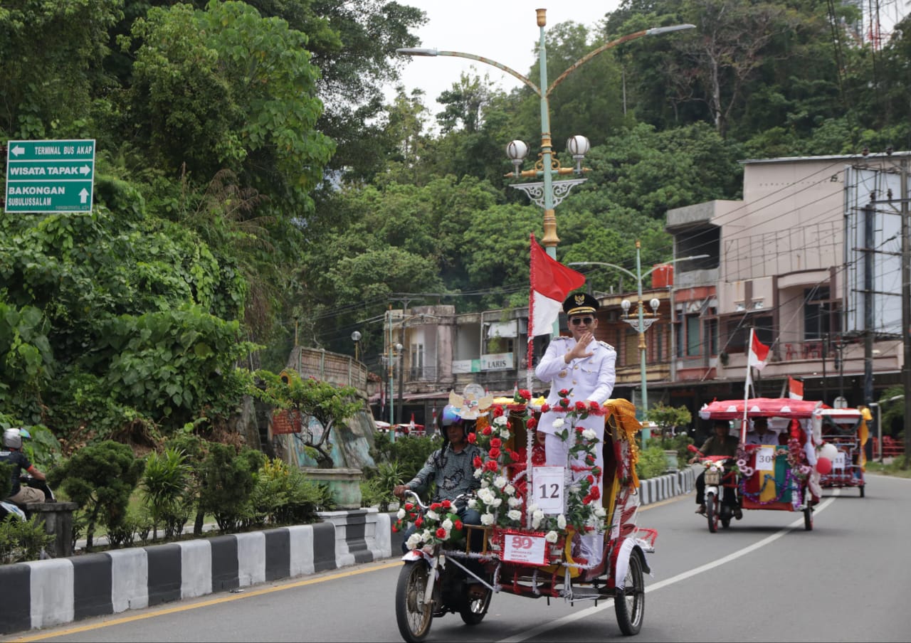 Keriahan HUT RI, Dandim 0107/Aceh Selatan Bersama Forkopimda Keliling Kota Tapaktuan dengan Becak Hias