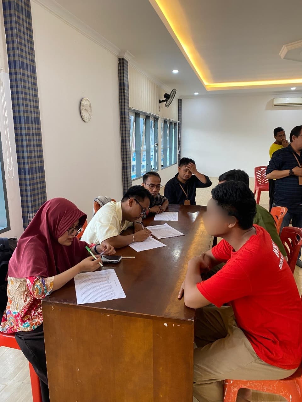 Kegiatan ini diawali dengan pengimputan data diri peserta, dilanjutkan dengan pengambilan sampel darah yang diperiksa menggunakan alat tes khusus HIV-AIDS dan Siphilis. Pemeriksaan ini bertujuan sebagai langkah deteksi dini serta edukasi kesehatan bagi warga binaan.