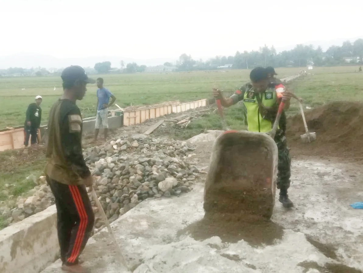 Kegiatan gotong royong tersebut sekaligus mencerminkan sinergi yang solid antara TNI dan rakyat dalam mendukung pembangunan di wilayah pedesaan