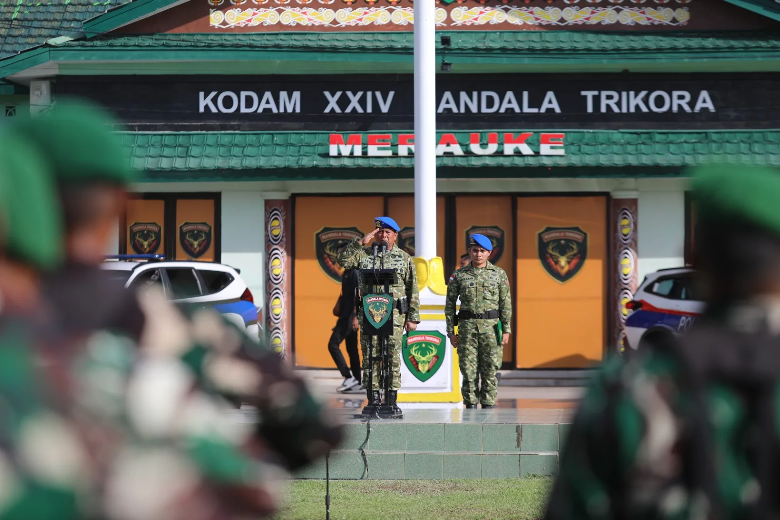 MERAUKE – Kodam XXIV/Mandala Trikora menggelar Upacara Gelar Pasukan Operasi Gaktib dan Operasi Yustisi Tahun Anggaran 2026 di Lapangan Makodam XXIV/MT, Merauke, Provinsi Papua Selatan, Jumat (13/2/2026). Kegiatan tersebut mengusung tema “TNI Prima, Taat Hukum, Berdaulat, Indonesia Maju.”