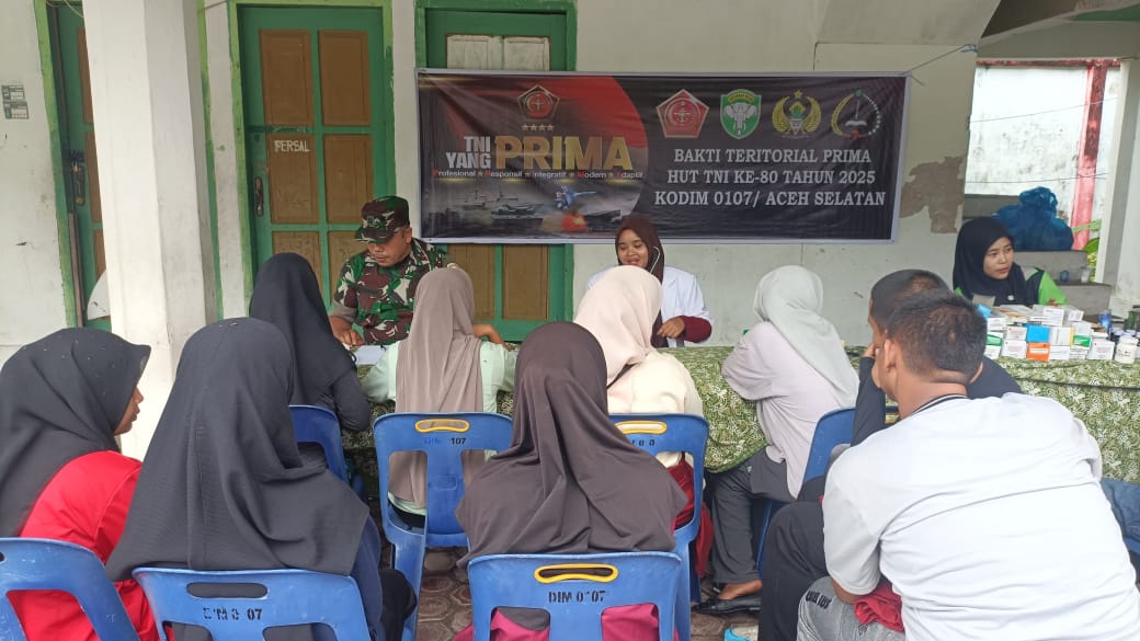 ACEH SELATAN – Kodim 0107/Aceh Selatan menggelar kegiatan Bhakti Kesehatan dalam rangka Bhakti Teritorial Prima. Kegiatan ini menjadi salah satu rangkaian peringatan HUT ke-80 TNI yang jatuh pada bulan Oktober tahun 2025.