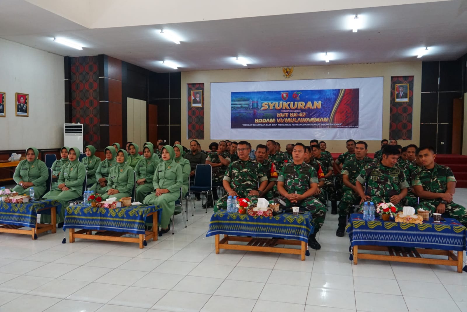 Dalam sambutannya Pangdam VI/Mulawarman Mayjen TNI Rudy Rachmat Nugraha, S.I.P., M.Sc. mengucapkan terima kasih kepada seluruh prajurit dan PNS Kodam VI/Mulawarman yang telah menyumbangkan tenaga dan fikiran serta dedikasinya untuk kemajuan Kodam VI/Mulawarman.