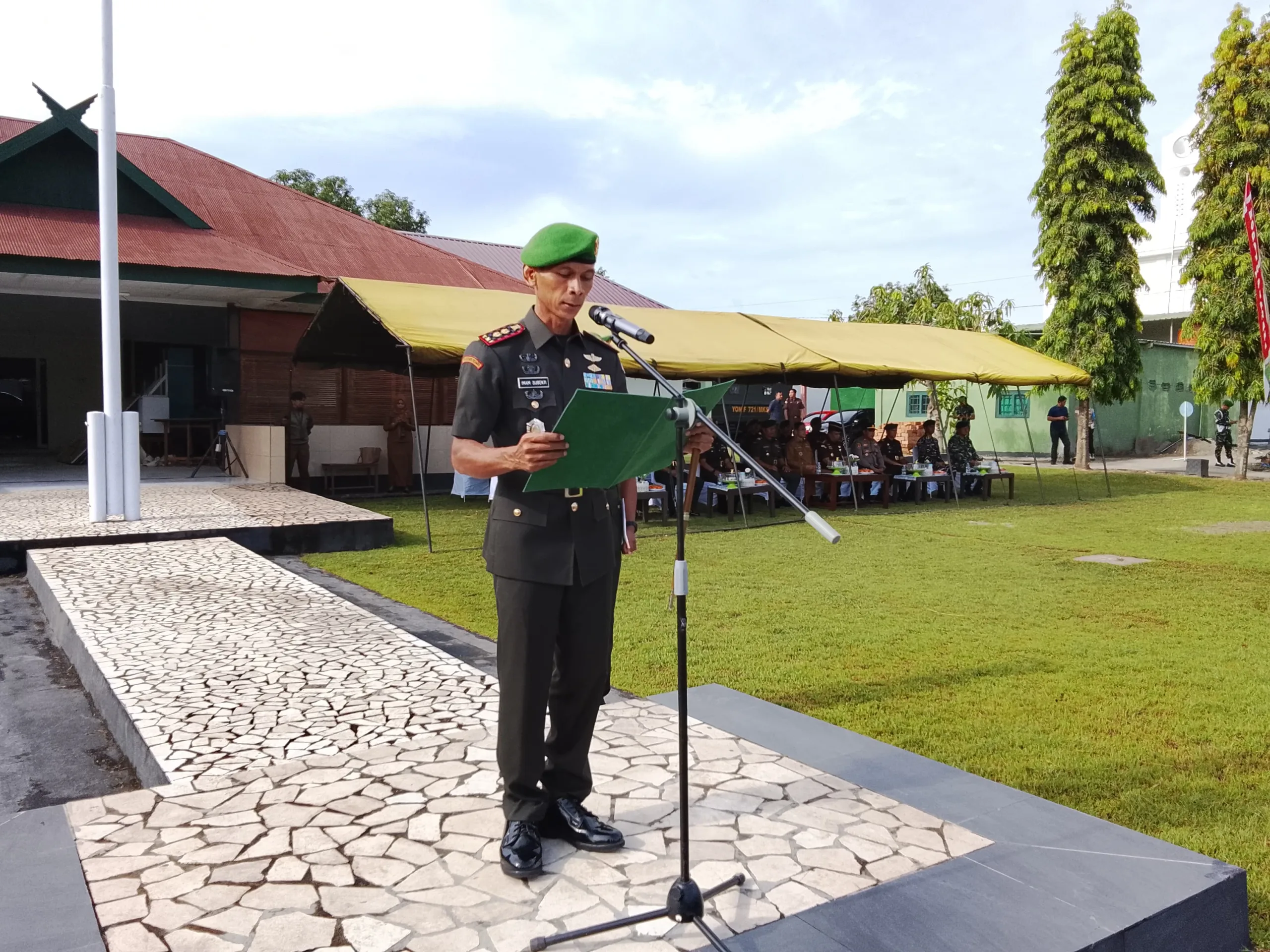 Pinrang_ Kodim 1404/Pinrang bersama Yonif 721/Makkasau melaksanakan upacara peringatan Hari Juang Tentara Nasional Indonesia Angkatan Darat (TNI AD) ke-80 Tahun 2025. Kegiatan tersebut berlangsung khidmat di Lapangan Upacara Makodim 1404/Pinrang, Kabupaten Pinrang, Senin (15/12/2025).