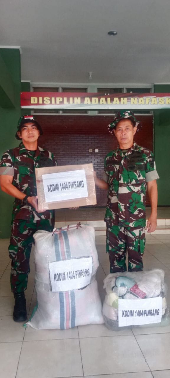 Dandim 1404/Pinrang Letkol Inf Abdullah Mahua, S.H.I., M.M., menyampaikan bahwa aksi ini merupakan bentuk kepedulian TNI terhadap saudara-saudara yang sedang mengalami musibah.