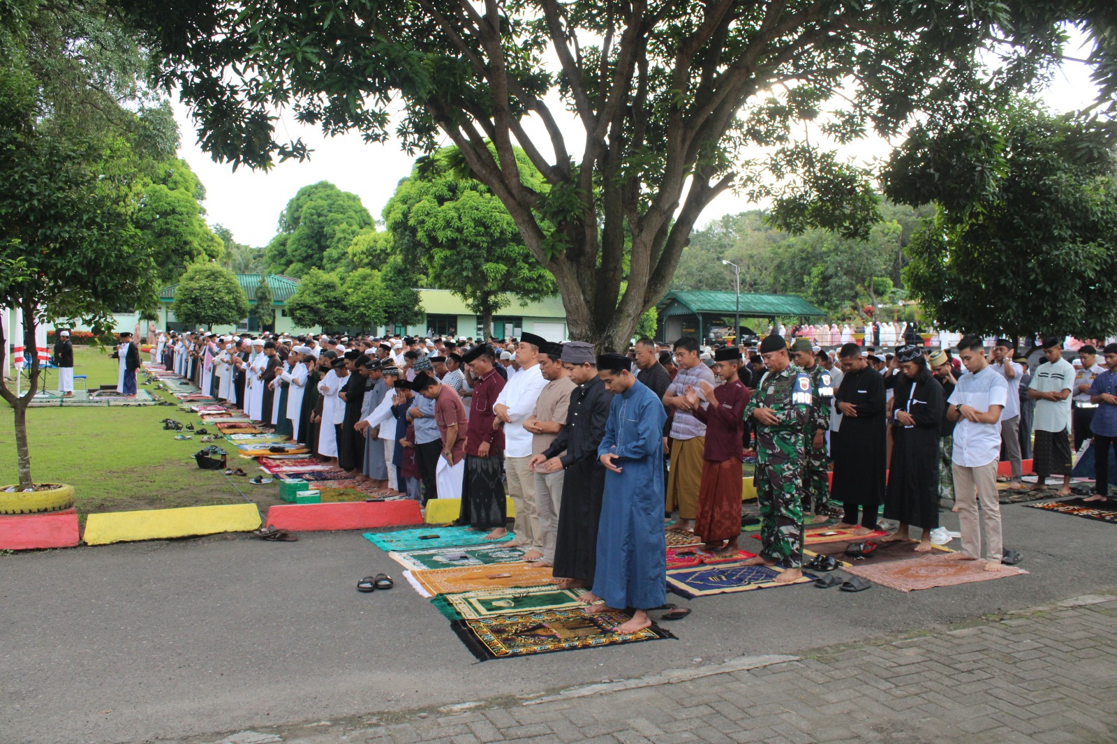 Sholat Idul Adha tidak hanya dihadiri oleh anggota TNI dan keluarga besar Kodim 1405 akan tetapi masyarakat sekitar juga turut serta melaksanakan Sholat Idul Adha.