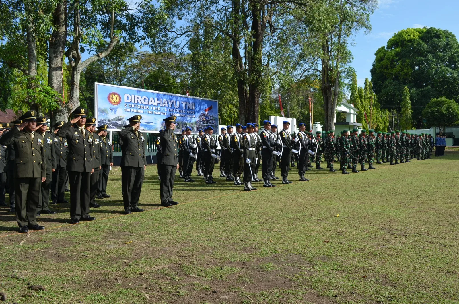 KODIM 1405/PAREPARE – Dalam suasana penuh khidmat, Personel Militer dan PNS Kodim 1405/Parepare menggelar upacara peringatan Hari Ulang Tahun (HUT) ke-80 Tentara Nasional Indonesia (TNI) Tahun 2025) di Makodim 1405/Parepare, Jalan Jenderal Ahmad Yani Km.4, Kelurahan Lapadde, Kecamatan Ujung, Kota Parepare, Minggu (5/10/2025).