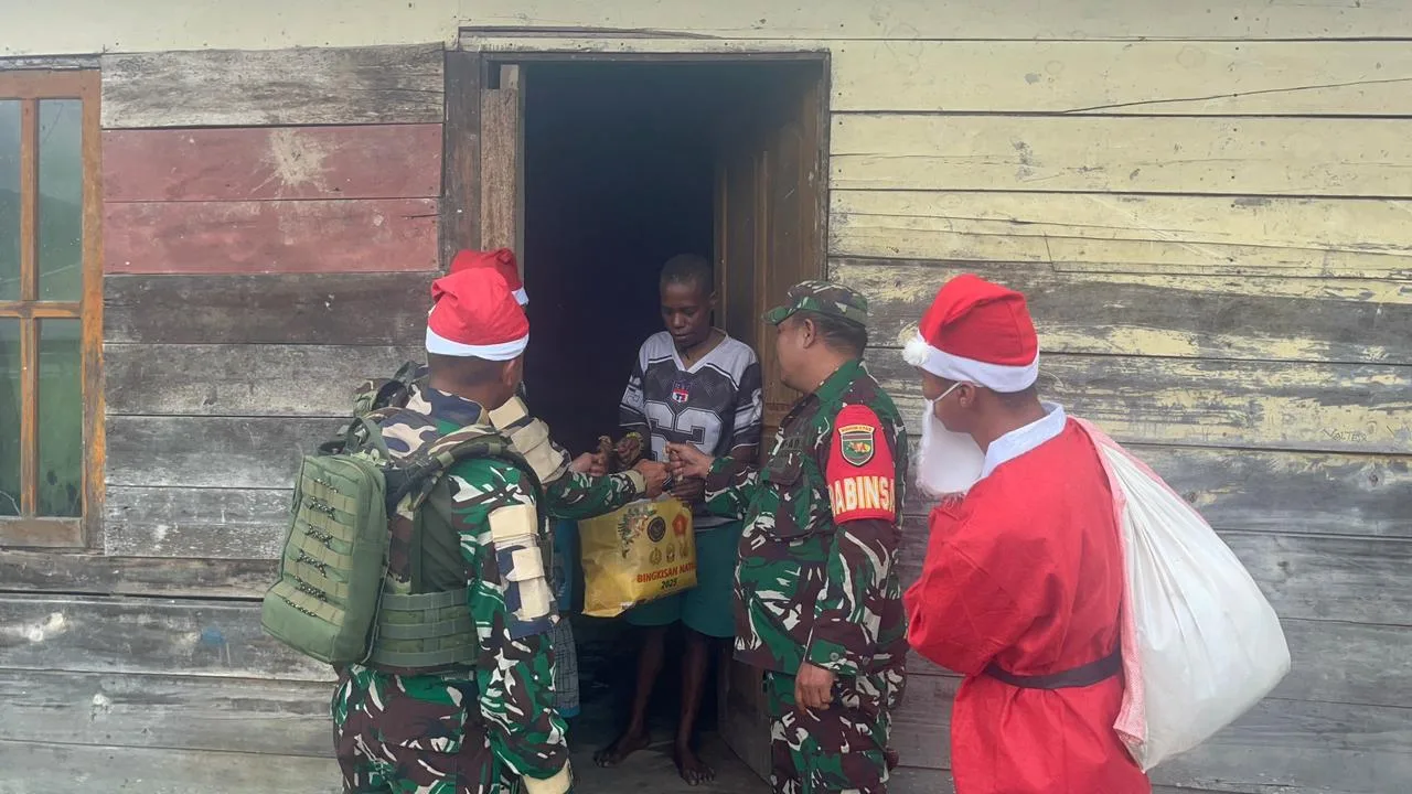 Obano – Babinsa Koramil 1703-03/Obano Serda Nazarudin Tambunan, bersama 3 orang rekan babinsa dan 10 orang Anggota Satgas Pamtas Yonif 711/Rks, melaksanakan kegiatan pembagian bingkisan natal berupa sembako kepada warga masyarakat di wilayah kampung binaan. Bertempat di Kampung Obano, Distrik Paniai Barat, Kabupaten Paniai, Prov. Papua Tengah. Selasa,(23/12/2025).