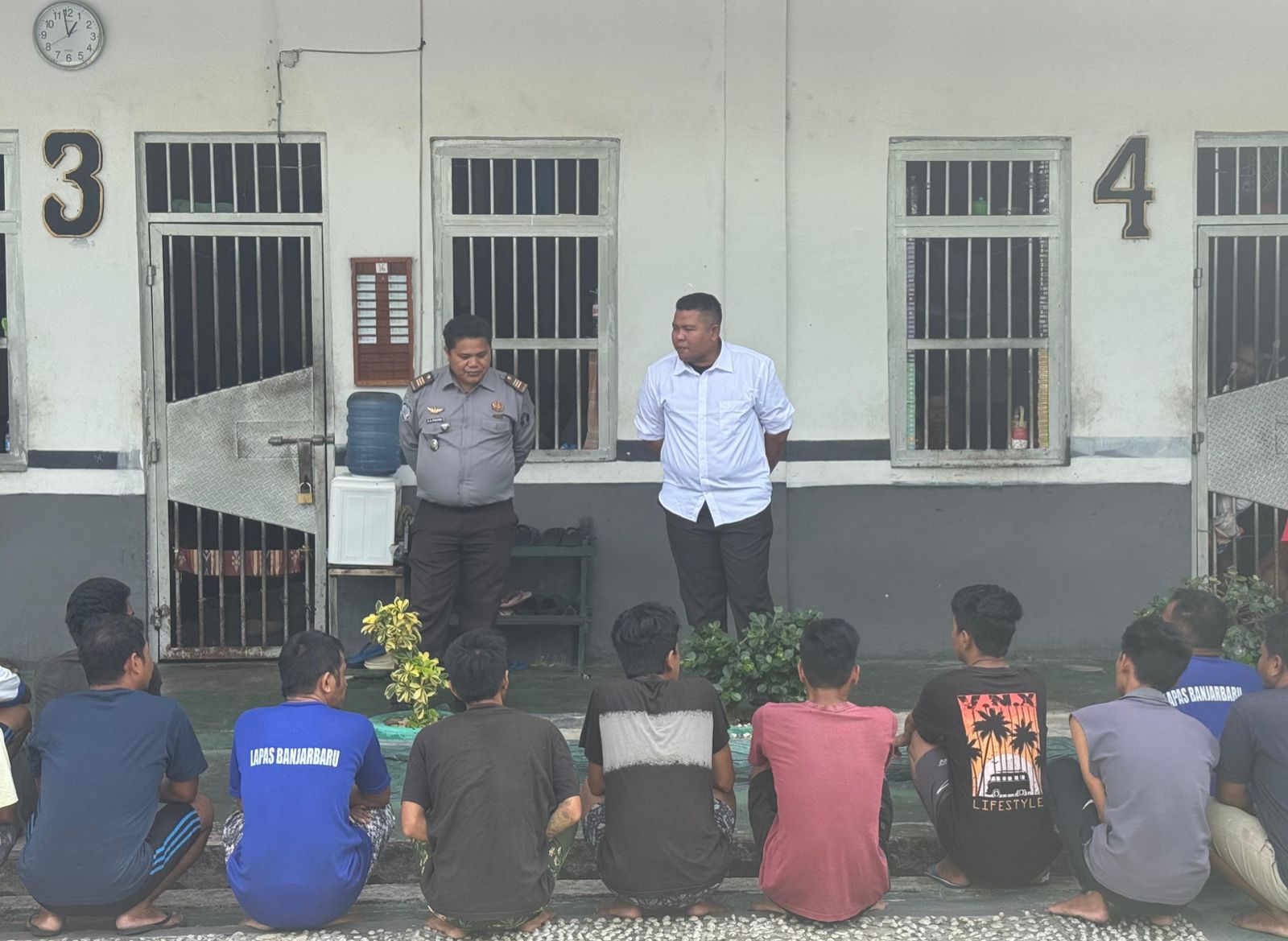 Kesatuan Pengamanan Lapas (Ka. KPLP), Medy Albar Suhartanto, bersama Kepala Seksi Administrasi Keamanan dan Ketertiban (Kamtib), Sabar Anju Padang, Kepala Subseksi Kamtib, Sahri Mulyanto, dan Kepala Subseksi Pelaporan dan Tata Tertib, Tri Andi Widiarto. Turut serta jajaran staf KPLP, staf Kamtib, dan anggota regu pengaman (rupam).