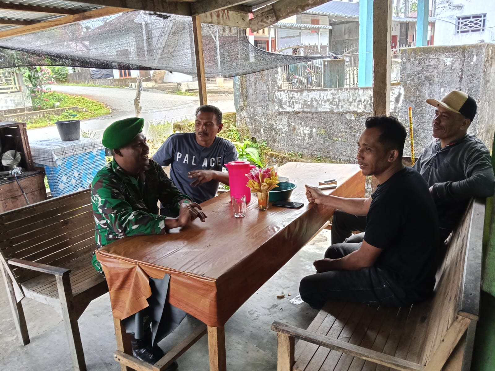Tampak dalam dokumentasi, Serda Alhadi duduk akrab bersama warga, menciptakan suasana hangat dan penuh kekeluargaan. Ini sekaligus membuktikan bahwa keberadaan Babinsa di tengah masyarakat bukan sekadar formalitas, melainkan wujud nyata kemanunggalan TNI dengan rakyat.