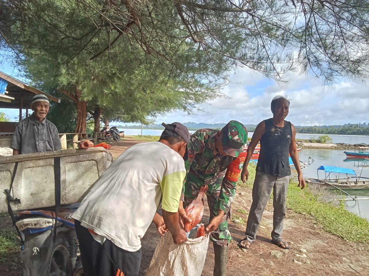 Simeulue – Kopda Fadlan Babinsa Koramil 04/Salang melaksanakan kegiatan Komsos dan silaturrahmi dengan penjual Ikan hasil tangkapan nelayan, melihat hasil tangkapan nelayan di situasi suasana lebaran untuk mencukupi kebutuhan konsumsi masyarakat dan menghimbau kepada penggalas agar menjual ikan dengan harga standar dan segar. Kegiatan dilaksanakan di Desa Bunga Kec. Salang, Rabu (02/04/2025).