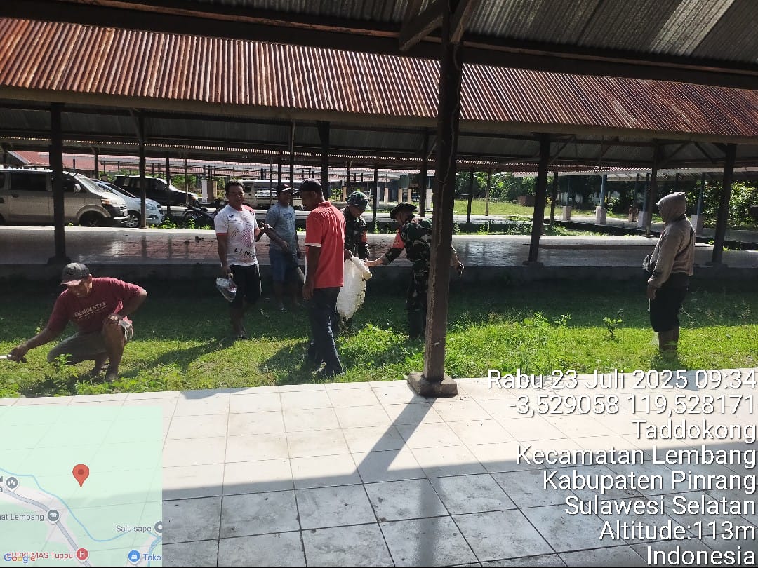 Pinrang_ Peduli terhadap kebersihan Lingkungan, Babinsa Koramil-07/Lembang Kodim 1404/Pinrang beserta warga melaksanakan aksi pembersihan pasar Tuppu di Kelurahan Tadokkong Kecamatan Lembang Kabupaten Pinrang, Rabu (23/07/2025).