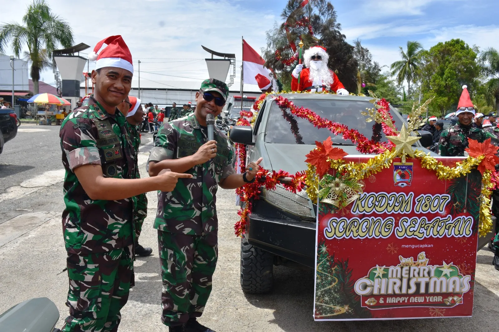 Sorong – Papua Barat Daya Korem 181/PVT Yang diwakili Kasiter Kasrem 181/PVT Kolonel Arm Ari Priyudono, S.Sos., M.Tr.Han., Memimpin Kegiatan “Karnaval Natal Tahun 2025 Bersama Kodam XVIII/Ksr Patriot Pembela Rakyat* dengan menggunakan Rute Start Alun-alun Kota Baru Aimas Finisnya di Kantor Walikota Sorong dengan ikuti ± 200 Peserta. Bertempat di di Alun-alun Aimas Jln Sorong Klamono km 19 Kelurahan Malagusa Distrik Aimas Kabupaten Sorong Provinsi Papua Barat Daya