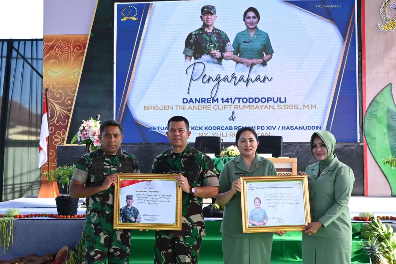 Watampone – Komandan Korem 141/Tp Brigjen TNI Andre Clift Rumbayan, S.Sos., M.M., didampingi Ketua Persit Kartika Chandra Kirana Koorcab Rem 141 PD XIV/Hasanuddin Ny. Yuli Rumbayan melaksanakan kunjungan kerja di Makodim 1407/Bone Jl. Lapatau Kel. Manurunge, Kec. Tanete Riattang, Kab. Bone yang disambut langsung oleh Dandim 1407/Bone Letkol Inf Laode Muhammad Idrus beserta Ketua Persit Kartika Chandra Kirana Cabang XXV Kodim 1407/ Bone Ny. Nur Fitrianti Laode, Para Perwira Staf Kodim 1407/Bone dan Para Danramil jajaran Kodim 1407/Bone. Kamis (28/08/2025)