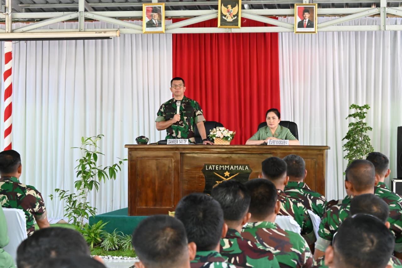 Soppeng – Komandan Korem 141/Tp Brigjen TNI Andre Clift Rumbayan, S.Sos., M.M., didampingi Ketua Persit Kartika Chandra Kirana Koorcab Rem 141 PD XIV/Hasanuddin Ny. Yuli Rumbayan melaksanakan kunjungan kerja di Makodim 1423/Soppeng, Jl. Merdeka No. 122 Watansoppeng, Lingkungan Laburawung, Kelurahan Lapajung, Kecamatan Lalabata, Kabupaten Soppeng, Sulawesi Selatan. Kamis (28/08/2025)
