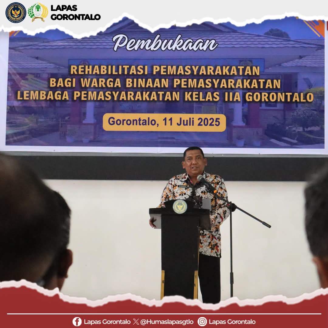 Gorontalo – INFO_PAS_Lembaga Pemasyarakatan (Lapas) Kelas IIA Gorontalo secara resmi memulai salah satu program unggulannya di tahun 2025 dengan menggelar pembukaan Kegiatan Rehabilitasi Pemasyarakatan. Acara pembukaan yang menandai langkah besar dalam perang melawan narkoba ini diselenggarakan di Aula Lapas pada hari Jumat, (11/7/2025).