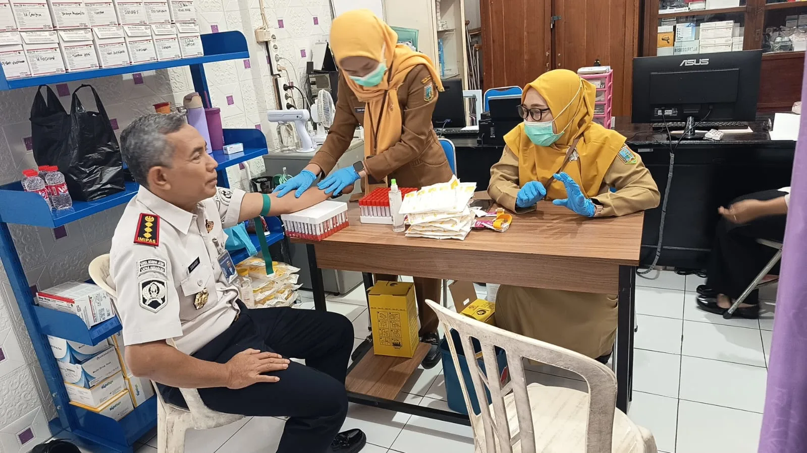 Kegiatan Pemeriksaan Kesehatan kepada pegawai dan warga binaan dilakukan oleh 4 Tenaga Kesehatan dari Puskesmas Ambarawa dengan didampingi 2 Tenaga Kesehatan Lapas Ambarawa berjalan tertib, aman dan sehat. (LASAMBAWA).