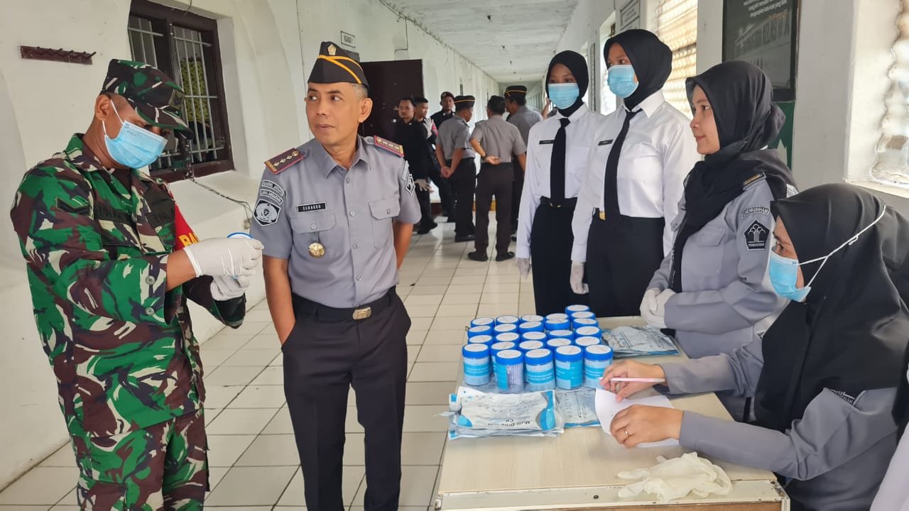 Kegiatan tes urine dari Polsek Ambarawa 2 Anggota, Koramil Ambarawa 2 Anggota dan Puskesmas Ambarawa 2 Petugas Kesehatan dengan didampingi oleh Kalapas beserta seluruh jajaran Lapas Ambarawa dan kegiatan berjalan tertib, aman dan terkendali. (LASAMBAWA).
