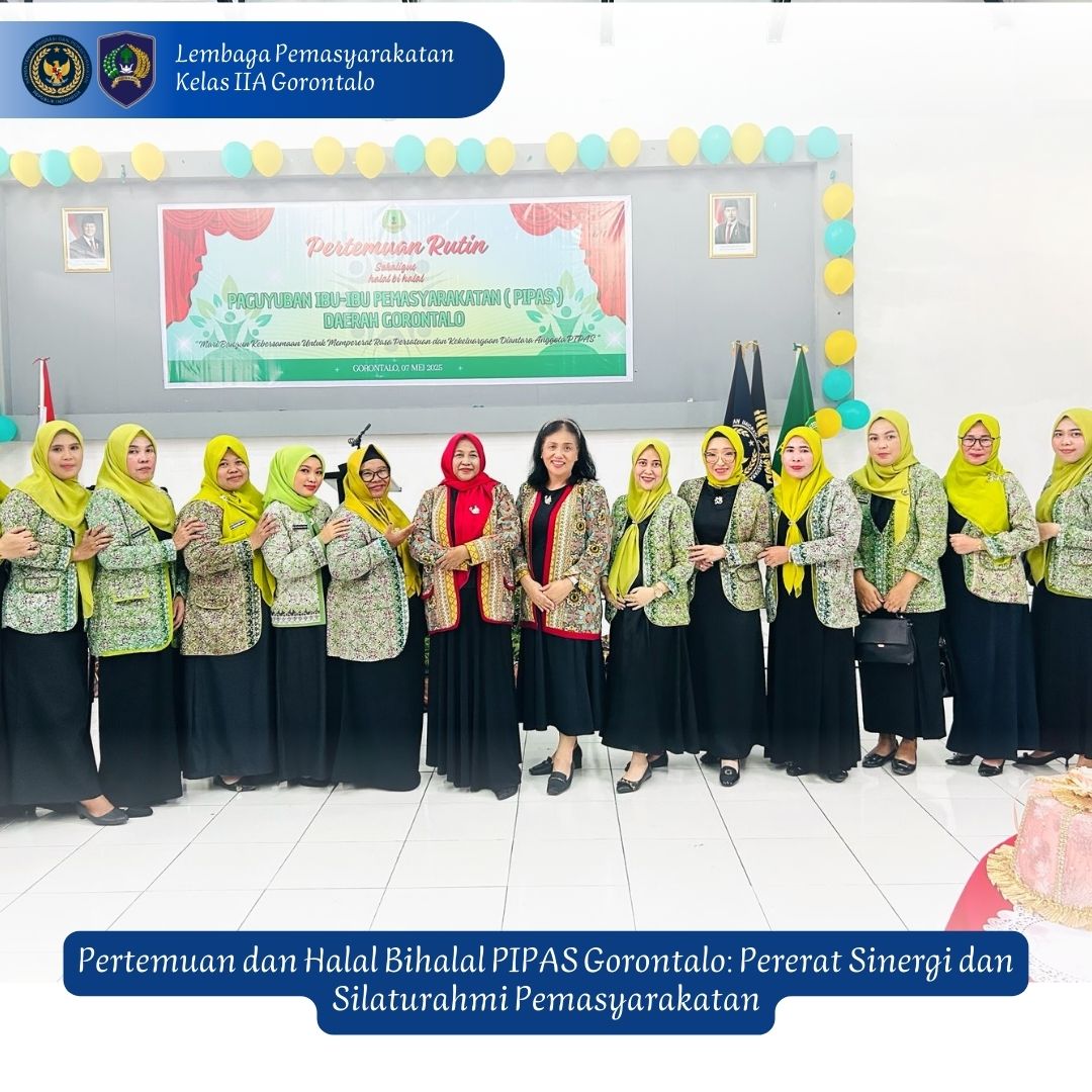 Sementara itu, Ketua PIPAS Gorontalo, Nyonya Anik Bambang Haryanto, berharap pertemuan rutin dan halal bihalal ini menjadi semangat baru untuk terus aktif berkontribusi. “Mari kita jaga semangat kebersamaan ini, terus menjadi penyemangat bagi para suami kita dalam menjalankan tugas yang penuh tantangan di bidang pemasyarakatan.”