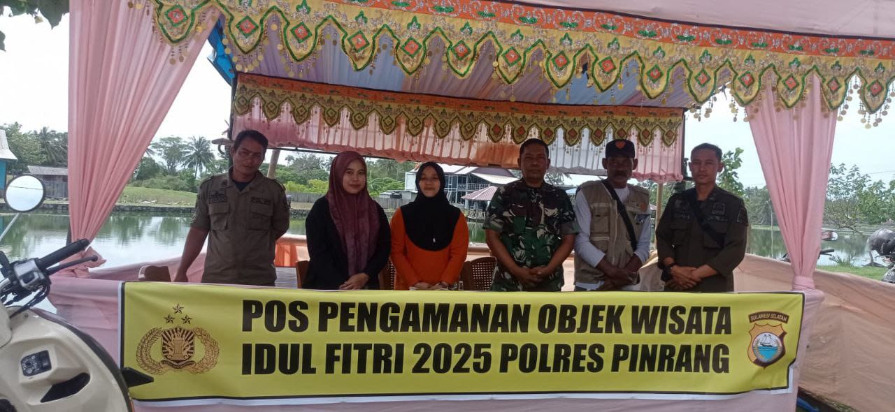 Pinrang, Untuk memastikan keamanan dan kenyamanan para pengunjung selama libur lebaran, Babinsa Koramil-02/Mattiro Sompe Kodim 1404/Pinrang bersama instansi terkait melaksanakan pengamanan objek wisata pantai harapan ammani di Desa Ammani Kecamatan Mattiro Sompe Kabupaten Pinrang, Jum’at (04/04/2025).
