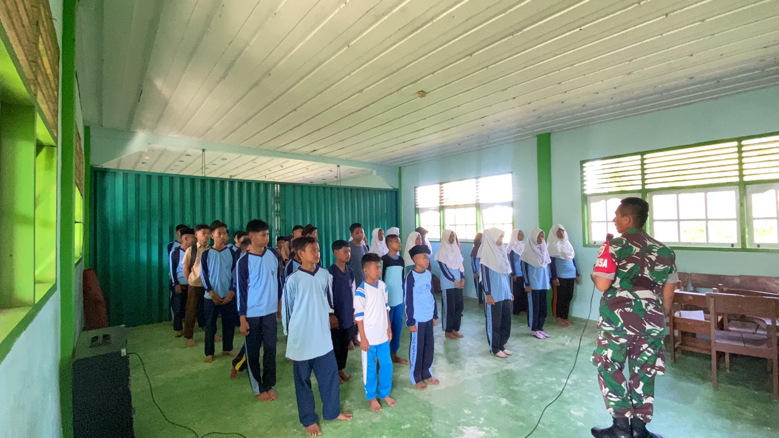 Babinsa memberikan pembekalan wawasan kebangsaan yang meliputi dasar Pancasila, kekompakan atau kebersamaan, serta belajar kesantunan.