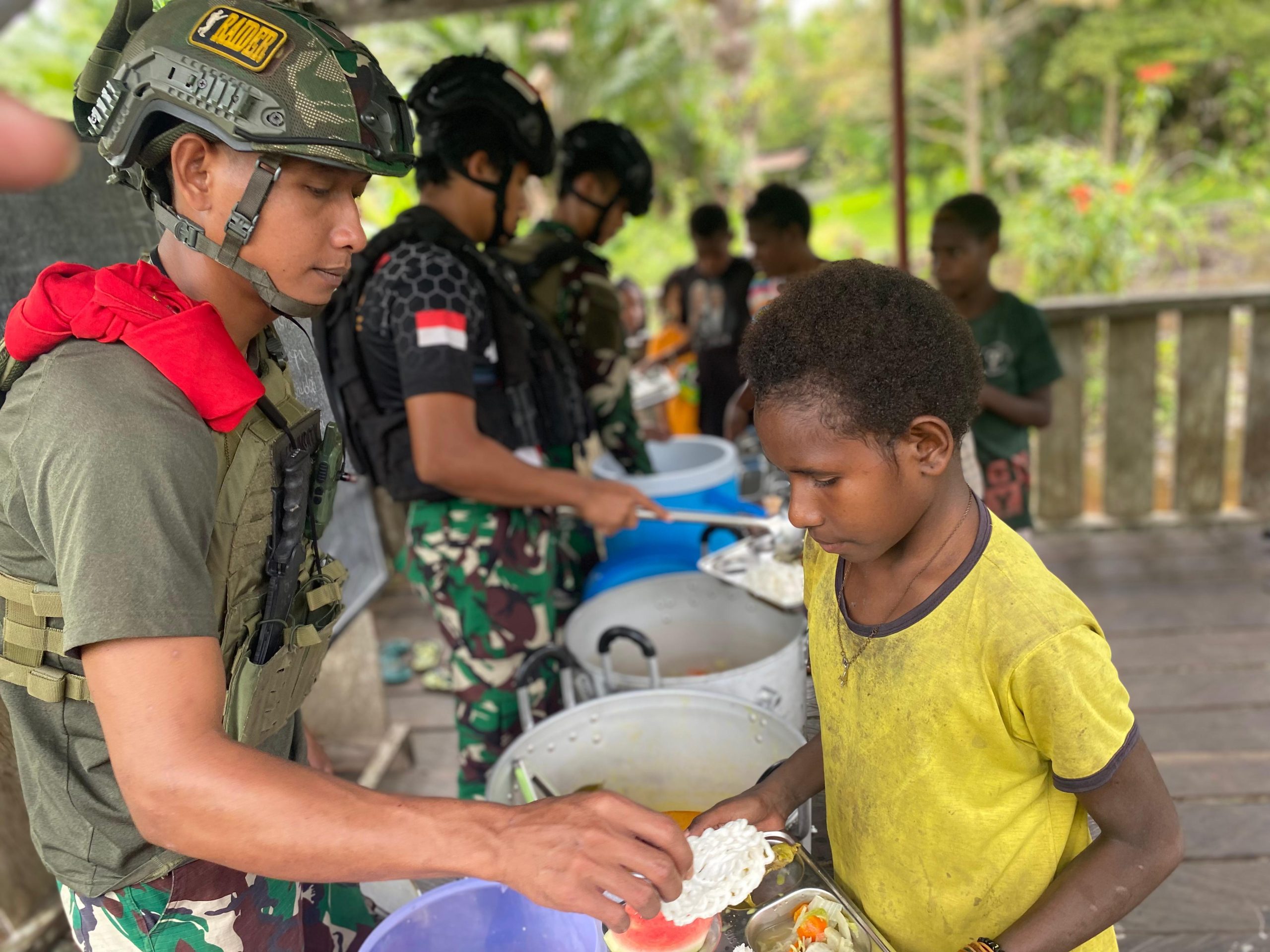 Papua, 20 September 2025 – Satgas Pamtas Mobile Yonif 3733/Masariku melaksanakan kegiatan sosial dengan berbagi makanan bergizi kepada siswa-siswi Sekolah Dasar (SD) Rimba Mumugu. Kegiatan ini merupakan bagian dari upaya meningkatkan kualitas gizi anak-anak di wilayah perbatasan.