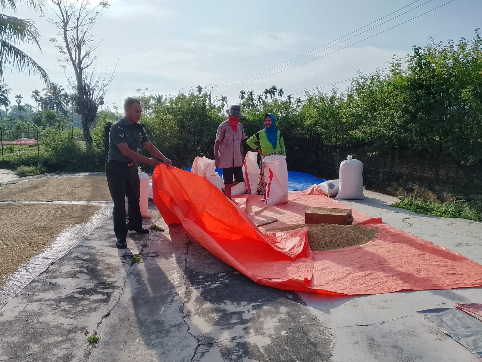 Pidie, —Pasca musim panen yang padat, Babinsa Koramil 15/Tiro Kodim 0102/Pidie, Serda Irfan, turun langsung membantu petani Desa Panton Bunot, Kecamatan Tiro, Kabupaten Pidie, dalam proses pengeringan padi secara tradisional. Tak sekadar membantu, Serda Irfan juga memperkenalkan teknologi pengeringan modern berupa Solar Dryer Dome kepada para petani, Rabu (25/06/2025).