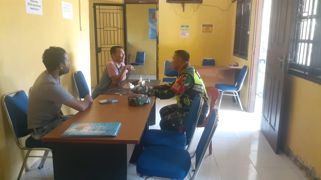 Keakraban tersebut terlihat saat Babinsa sedang melakukan perbincangan di Kantor Desa Aluebata.