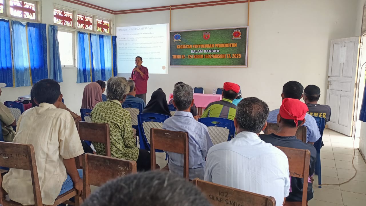 Penyuluhan pembibitan dalam program TMMD (TNI Manunggal Membangun Desa) Ke 124 Kodim 1502/Masohi bertujuan untuk meningkatkan pengetahuan dan keterampilan masyarakat tentang budidaya bibit, khususnya tanaman pangan dan hortikultura yang di laksanakan di Dsn. Simalow Ds. Sepa Kec. Amahai Kab. Maluku Tengah. Sabtu ( 17/05/2025 ).