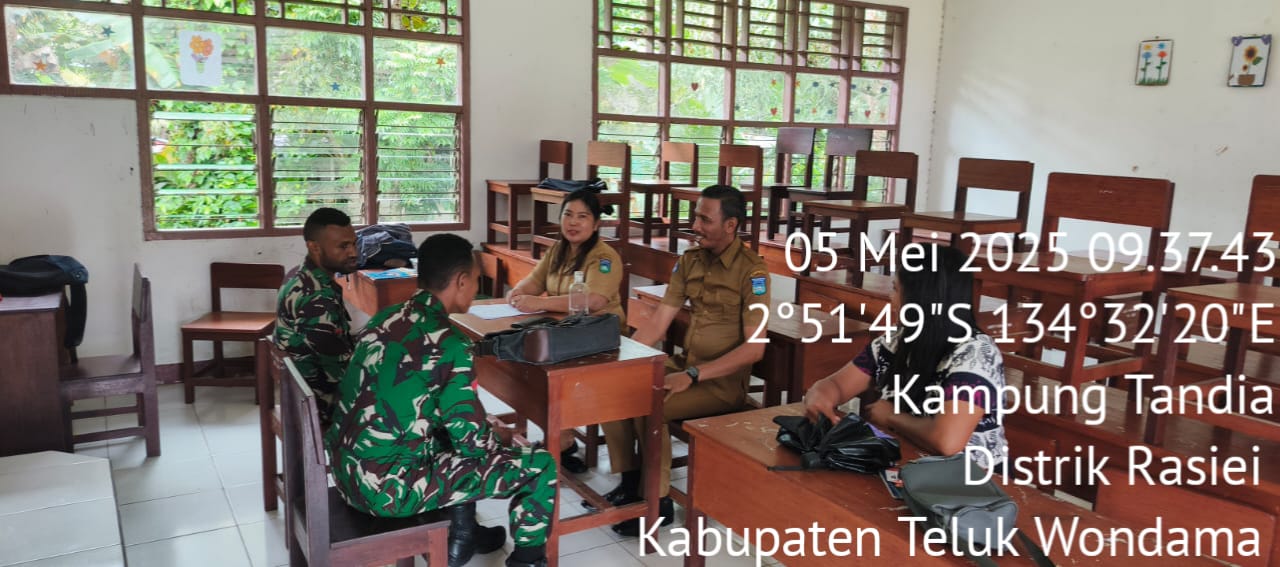 Cuaca hujan yang mengguyur Kabupaten Teluk Wondama tidak menghalangi semangat siswa-siswi SD Inpres Tandia, Kampung Tandia, Distrik Rasiei, untuk mengikuti kegiatan apel pagi yang menggantikan upacara hari Senin. Babinsa 1811-01/Wasior, Prt Yubar, hadir sebagai pembina apel pagi dan memberikan wawasan kebangsaan yang mendalam kepada para siswa.
