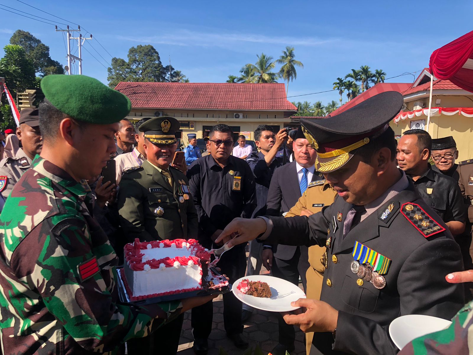 PARIT MALINTANG, – Kodim 0308/Pariaman memberi kejutan dengan membawa Nasi Tumpeng Ke Polres Kab. Padang Pariaman dalam hal ini Kasdim 0308/Pariaman Mayor Inf Asrul Sani Mewakili Dandim 0308/Pariaman untuk memberi kejutan dengan membawa Nasi Tumpeng dan Kue HUT Bhayangkara ke Polres Kab. Padang Pariaman.